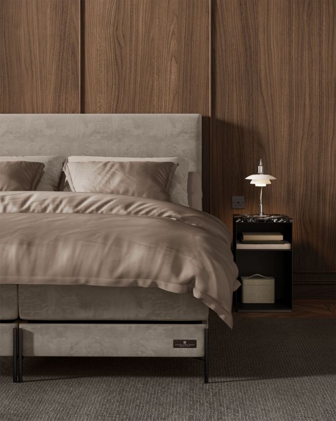 Carpe Diem Beds seng Marstrand med en lændestøtte, der giver ekstra komfort, når du ønsker at sidde op i sengen. Ved at trykke på en knap kan du styre sengens alle funktioner og skabe dine personlige indstillinger for den bedste sovekomfort. Med det unikke og patenterede Carpe Diem Beds Contour Pocket System tilpasser sengen sig efter alle dine bevægelser og din form for den bedst mulige trykaflastning. Marstrand har en bevidst og tidløs design med behagelig natbelysning, der kan tændes efter behov.